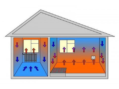 И наоборот, теплые полы являются, как будто бы большим радиатором отопления, обогревая в первую очередь людей.