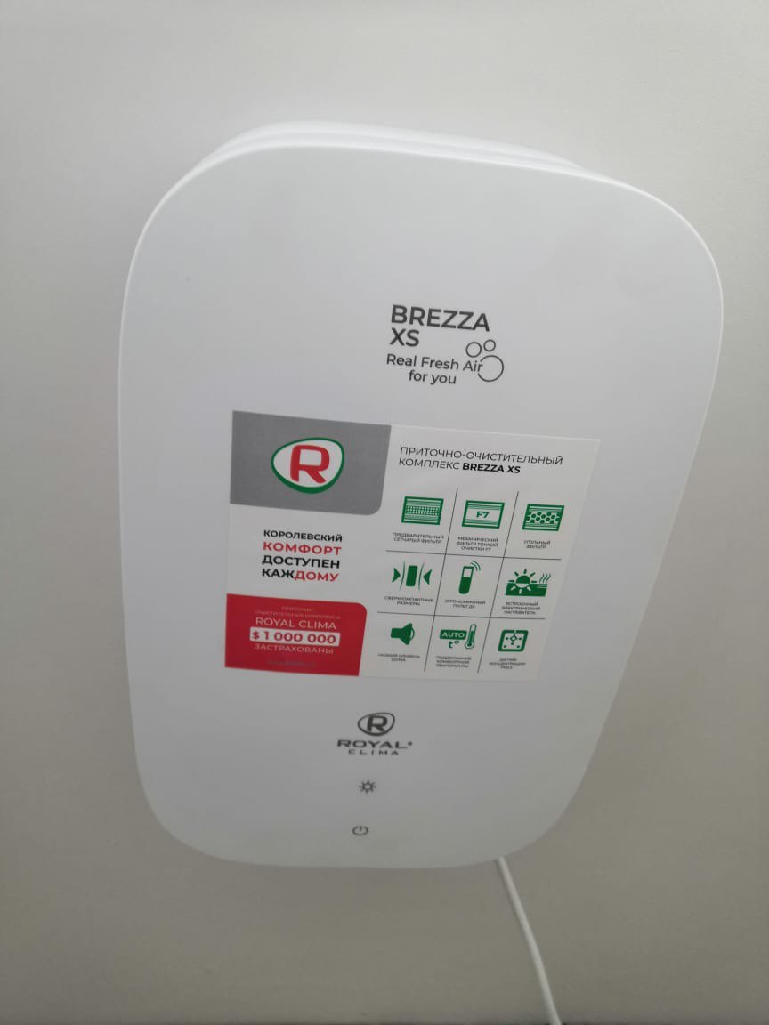 После озвучивания всех пожеланий клиентки, было подобрано оборудование марки Royal clima. Проточно-очистительный комплекс с подогревом воздуха и с трех ступенчатой системой фильтрации. Такой установка способна обеспечить свежий воздух в помещении до 20кв. Наш монтажник Павел произвел монтаж и настройку оборудования.