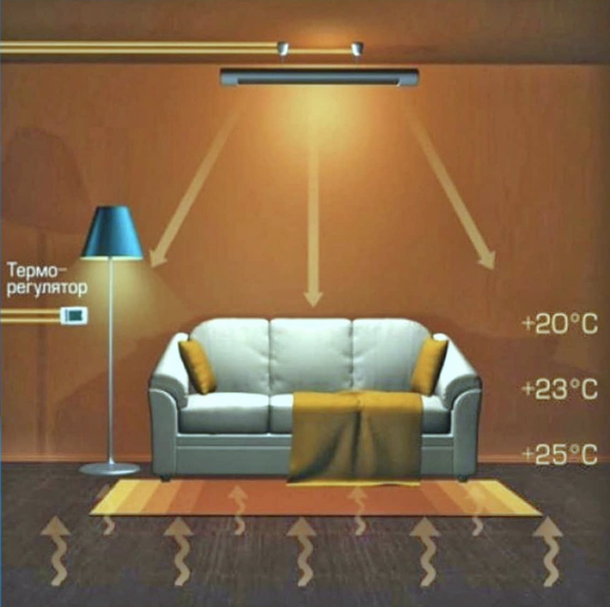 Лучистая энергия направляется на предметы интерьера, тем самым нагревая их, а не воздух. И уже прогретые предметы отдают свое тепло воздуху. ИК обогреватели не сушат воздух.?