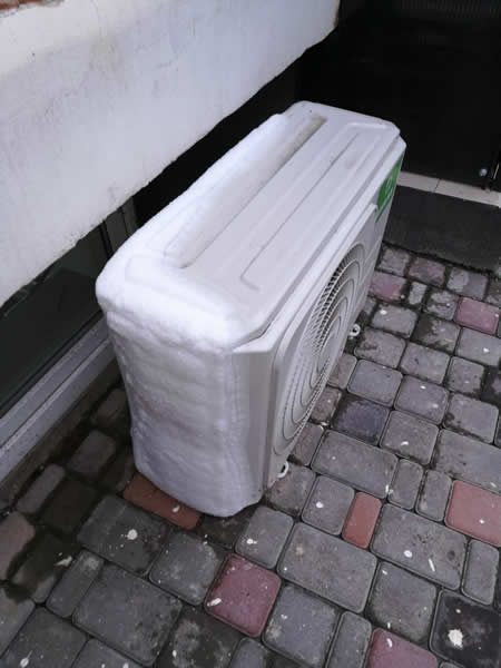 Обледенение внешнего блока кондиционера может привести к его разрушению.