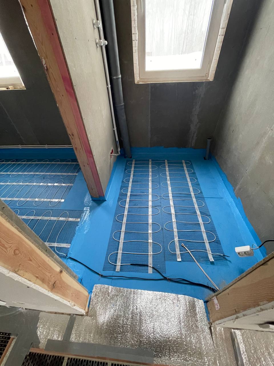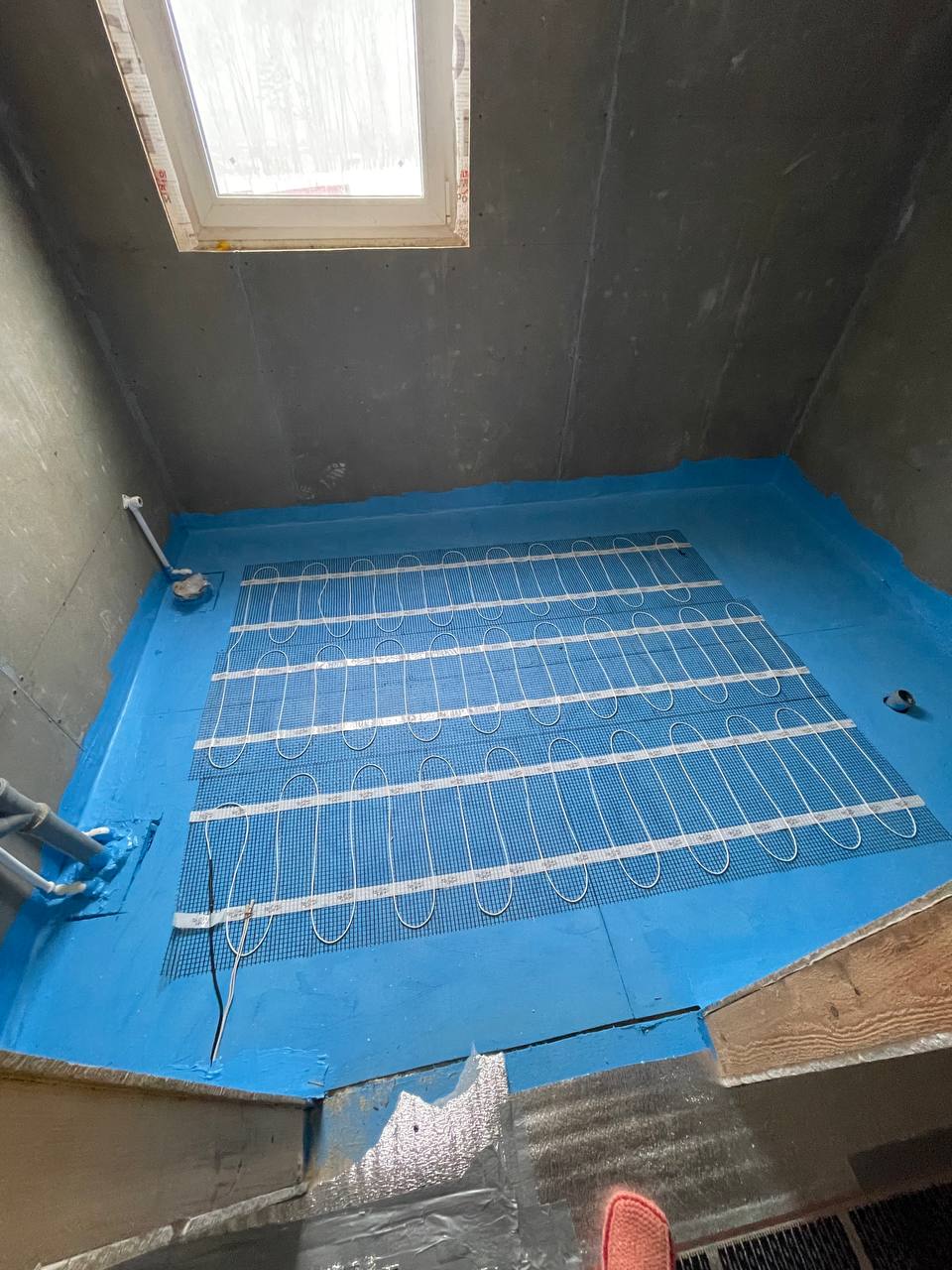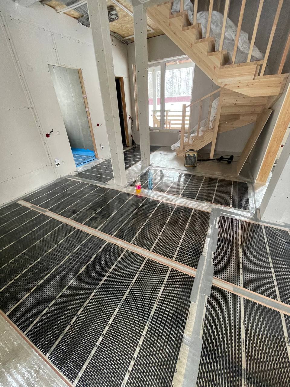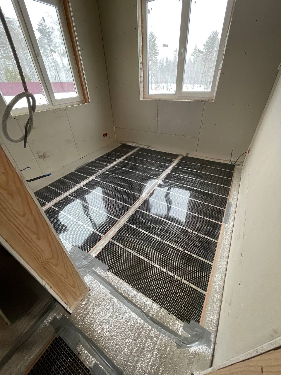 Наши специалисты определили зоны общего обогрева. Уложили теплоизоляционную подложку, а затем уже греющую пленку Корейского производства.