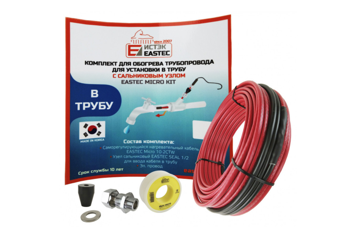 EMK-10 EASTEC комплект обогрева трубопровода для установки в трубу (10м-100 Вт) идеально подходит для использования в системах водоснабжения, включая:​