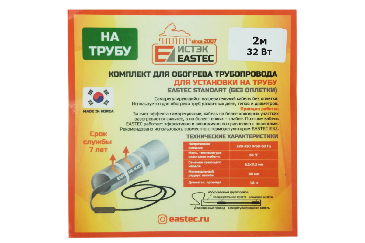 ES-02 комплект для обогрева трубопровода Eastec Standart 2м-32Вт