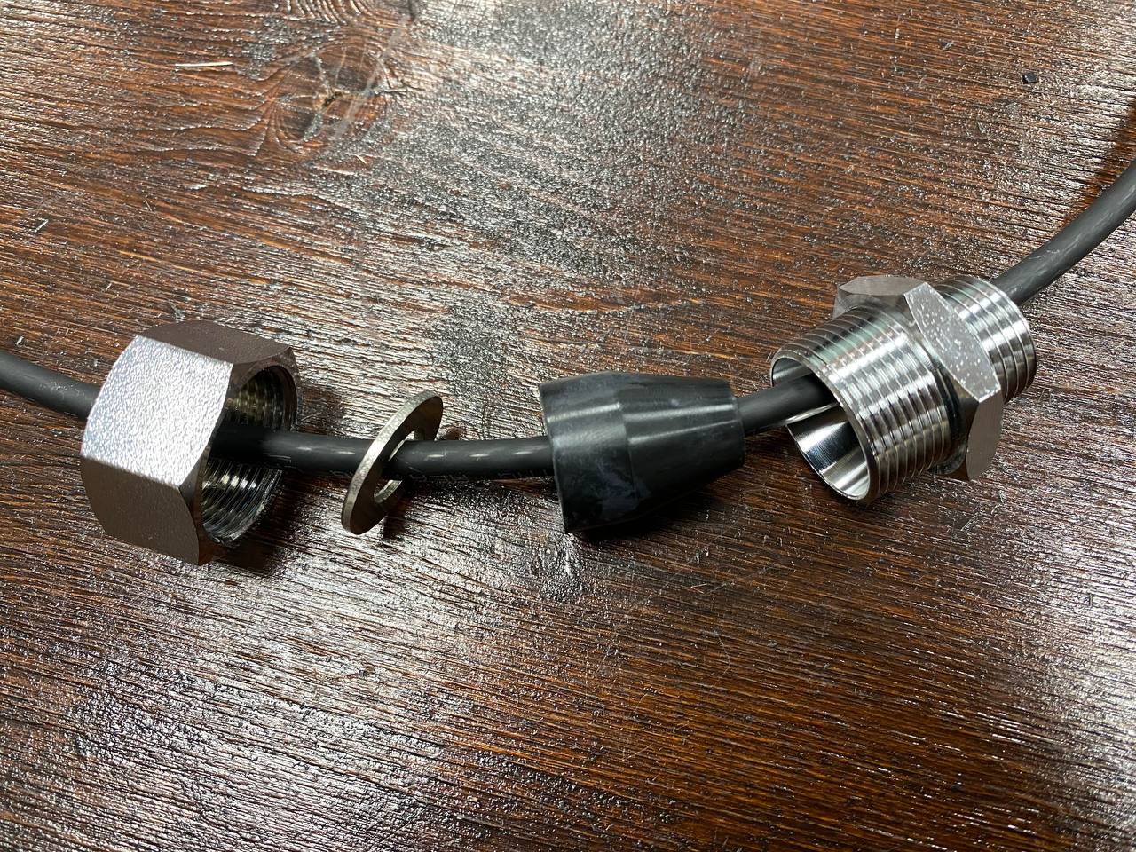 - Не забудем одеть на кабель внутрь трубы сальниковый ввод для герметичного соединения в системе водопровода.