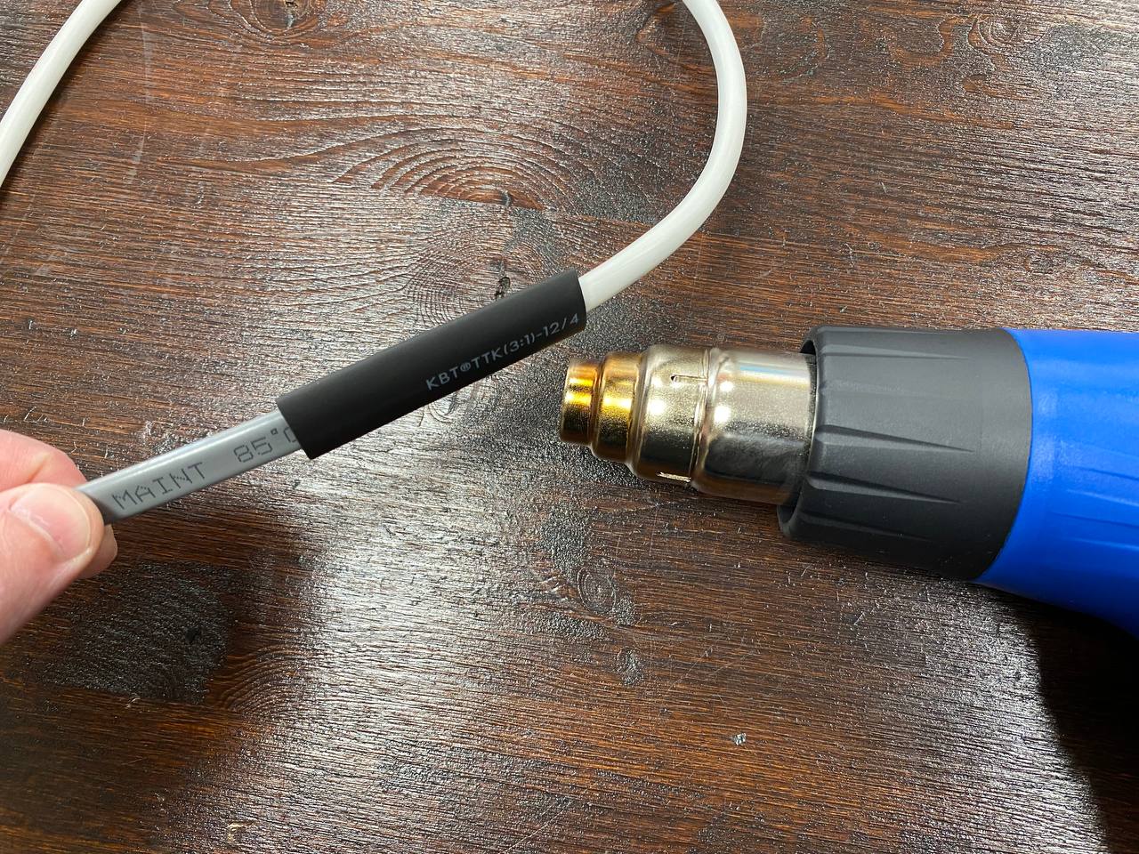 - После того как термоусадка обволокла кабель и приняла контур нашего соединения. Дадим ей 10 минут на остывание. Результат будет такой: