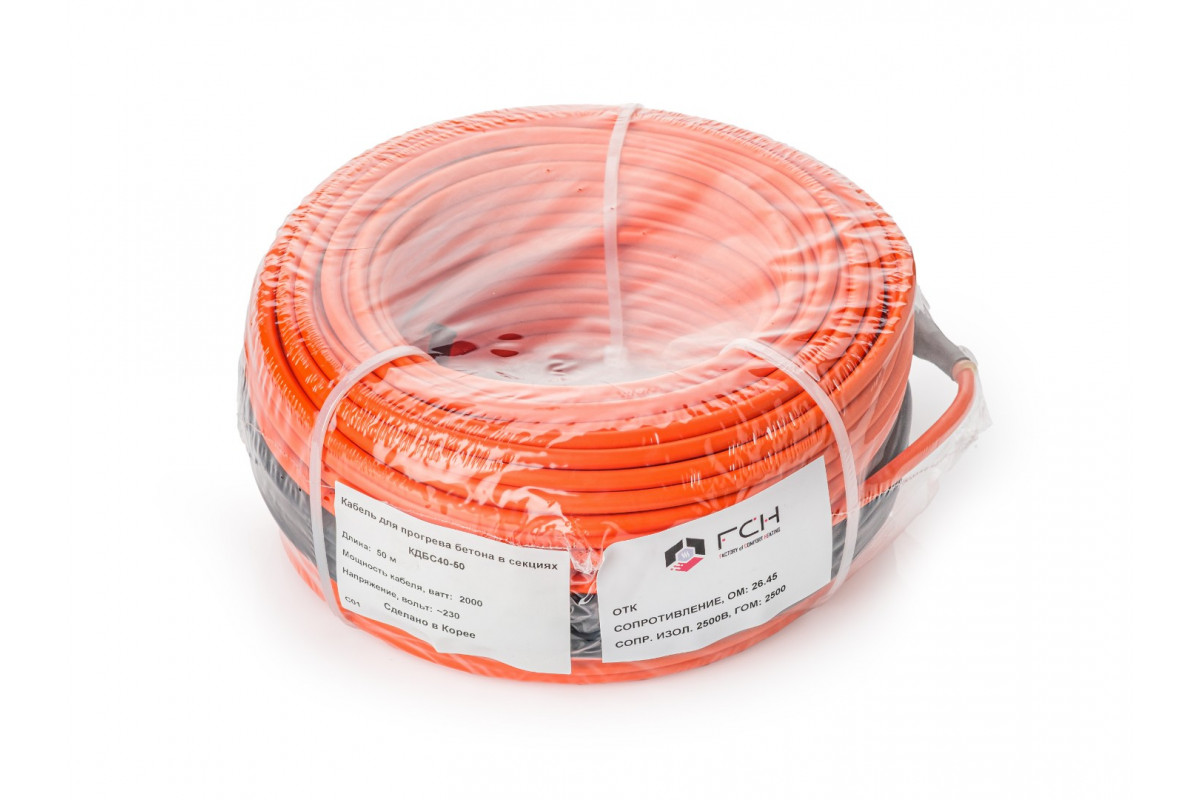 1.  Греющий кабель для прогрева бетона FCH КДБС40-35 – 1 шт.