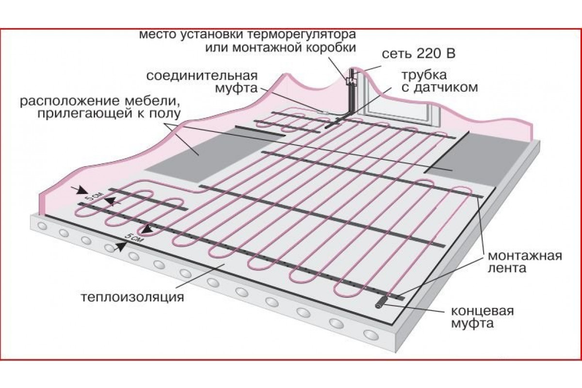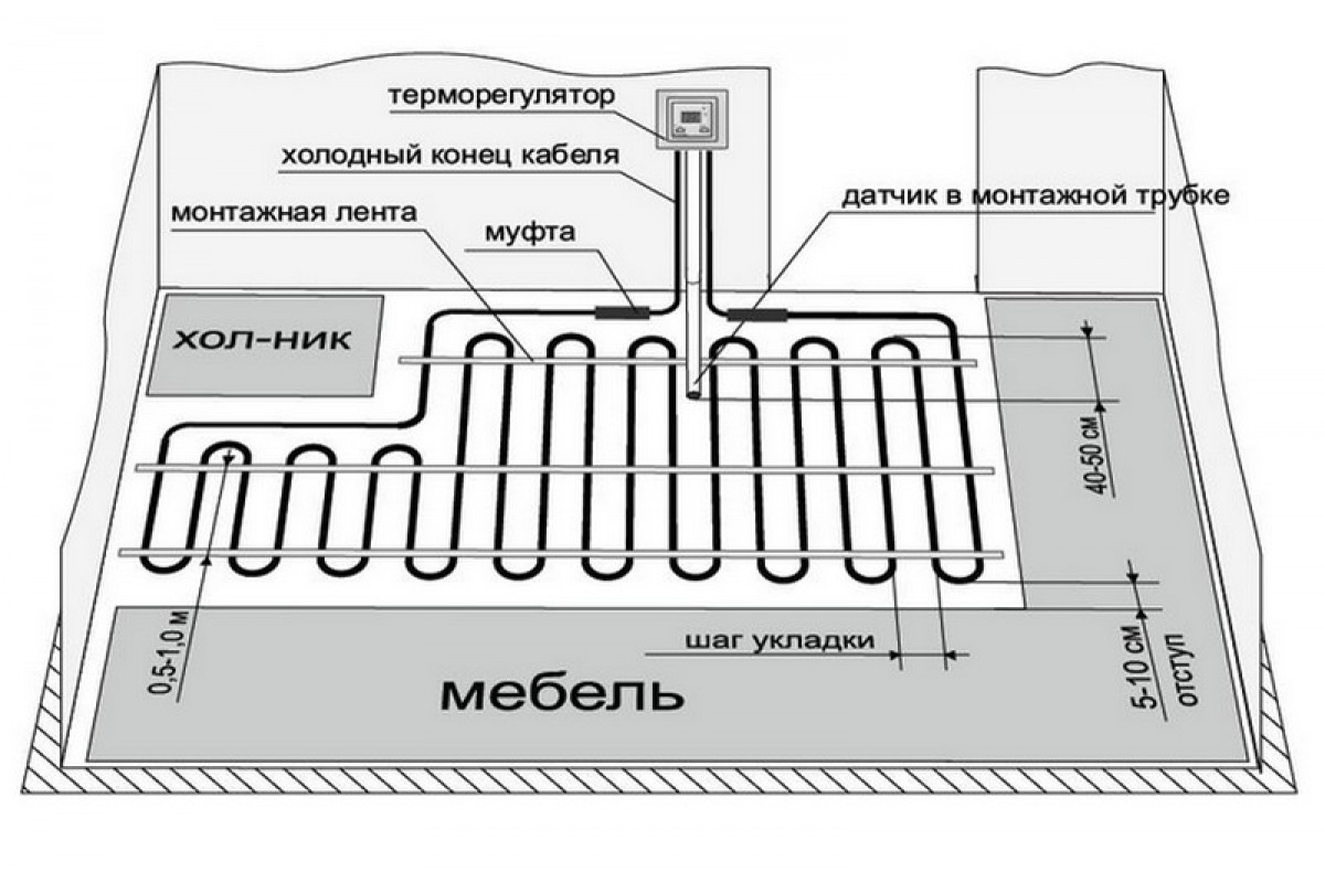 Независимо от того является ли нагрев напольного покрытия основным способом отопления помещения или дополнительным укладка электрического теплого пола своими руками осуществляется по одному алгоритму: