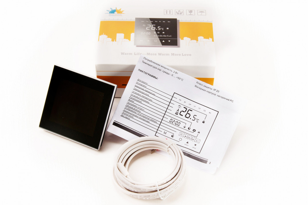 Программируемый терморегулятор для теплых полов WarmLife с сенсорным управлением.