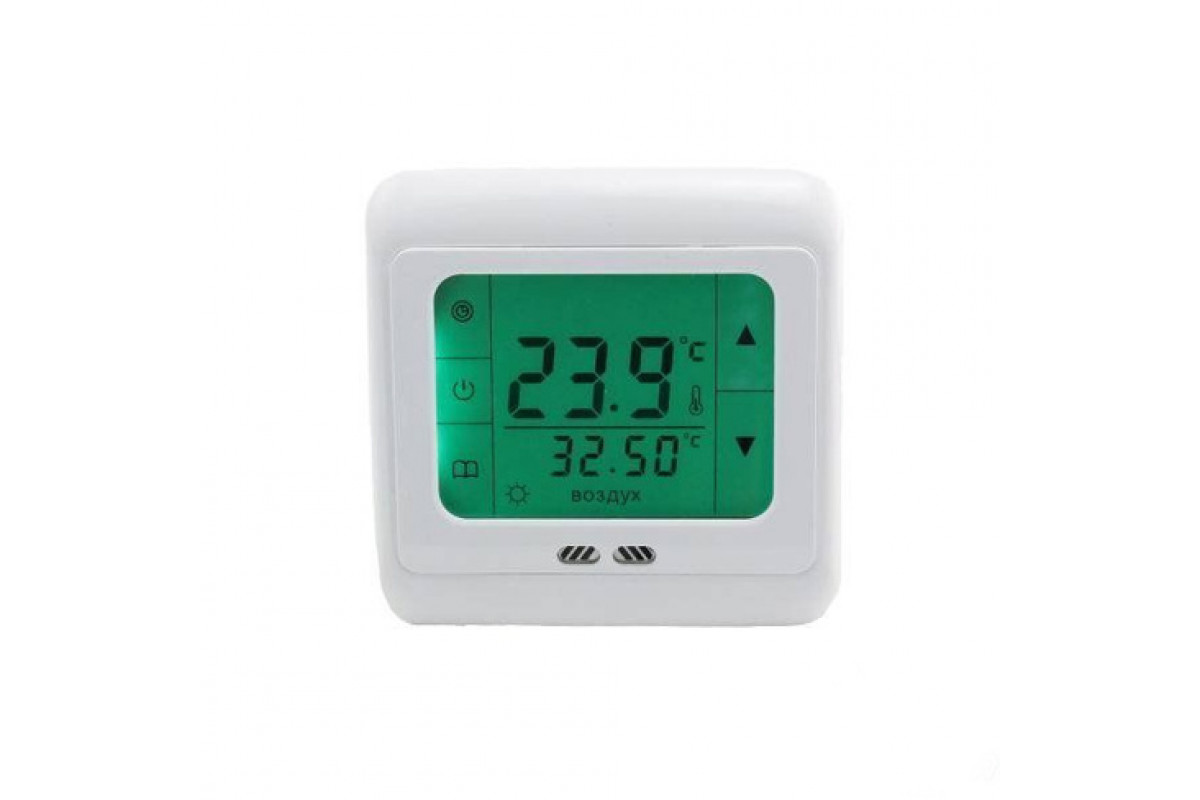 Информация о режимах работы, значения установленной и текущей температур отображаются крупными и понятными символами на жидкокристаллическом дисплее. При нажатии любой кнопки на жидкокристаллическом дисплее автоматически включается подсветка зеленого неонового цвета, что даёт возможность управлять терморегулятором при отсутствии наружного освещения.