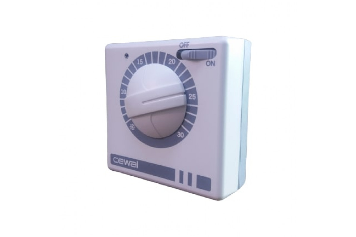 Терморегулятор CEWAL RQ30 очень прост в использовании. Все управление осуществляется с помощью поворотного диска. Вы устанавливаете желаемую температуру, и термостат автоматически включает и выключает прибор для поддержания заданной температуры воздуха.