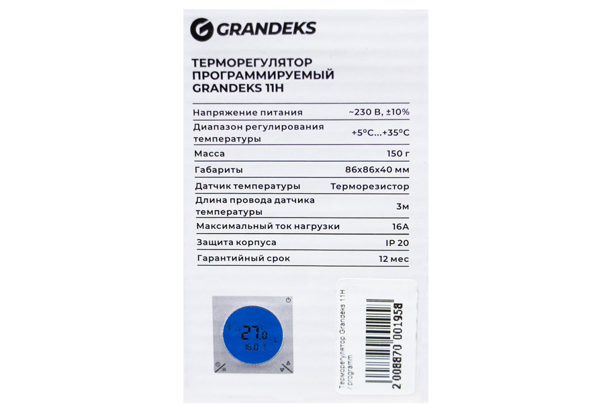 Купить Терморегулятор для теплого пола Grandeks 11H (электронный, программируемый) по выгодной цене вы можете в нашем магазине "БУРАН" в городе Москве.
