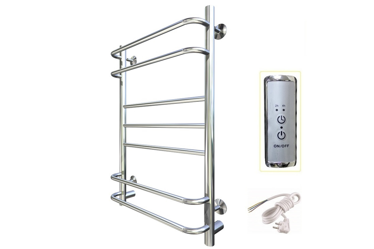 Экономичность: Полотенцесушитель снабжен панелью управления. Кнопка включения/выключения и таймер на 2 часа и 4 часа , который позволяет включать изделие на ограниченное время. Эта функция дает возможность экономить электричество.