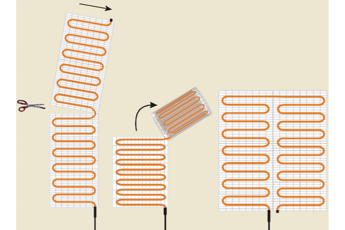 Расположение греющего кабеля на армирующей сетке не требует дополнительного монтажа направляющих шин и других сопутствующих элементов. Конфигурируйте без ограничений: прямоугольно, квадратно, Т-образно. В случае сложной геометрии (круговой или кривоугольной) кабель легко демонтировать с сетки и уложить нужным вам способом.