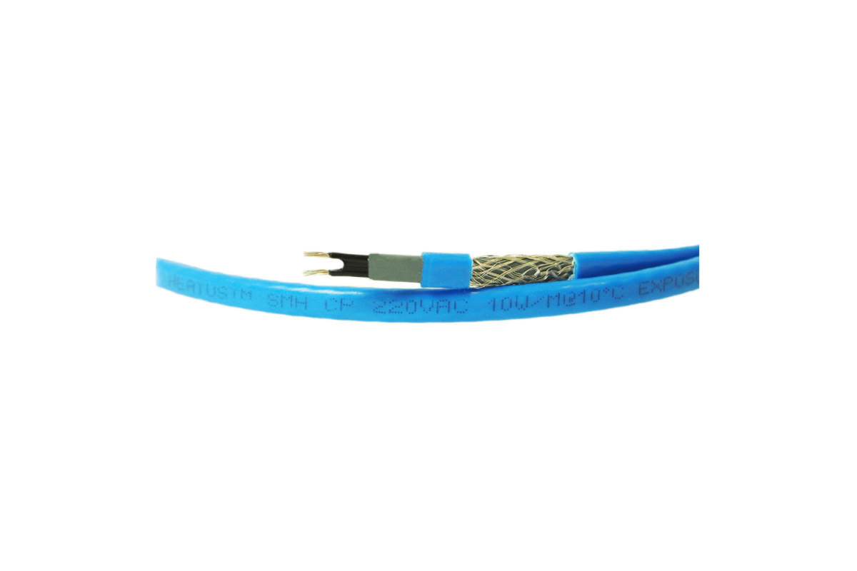 Греющий кабель Heatus 10SMH-CP мощностью 10 Вт/м, экранированный. Имеет внешнюю изоляцию из полиолефина и оболочку из пищевого ЛПЭНП