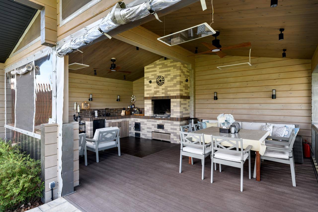 Конкретно на нашем примере, задача стояла в межсезонье создать тепло открытой беседке на случай прохладных вечеров и ранних осенних посиделок. Конечно же для открытых площадок эффективнее всего применять потолочный точечный нагрев зон пребывания людей. Таким образом мы не только экономим место но и энергоэффективно направляем тепловую энергию. В данном случае мы применяли обогреватели PION Thermo Glass серии Crystal. Это стеклянные прозрачные обогреватели инфракрасного типа, не портят дизайн и удивляют своей работой.