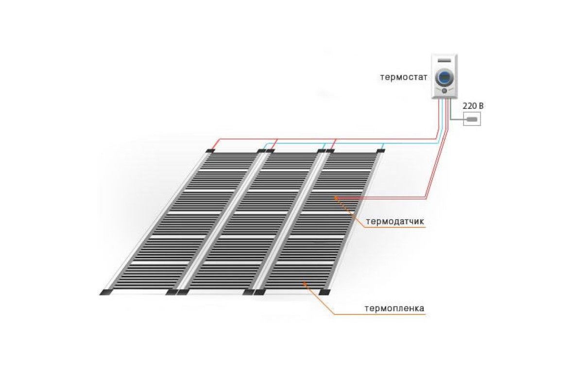 При подключении к сети 220В пленка начинает излучать инфракрасные волны, которые, соприкасаясь с ближайшей поверхностью, нагревают её.