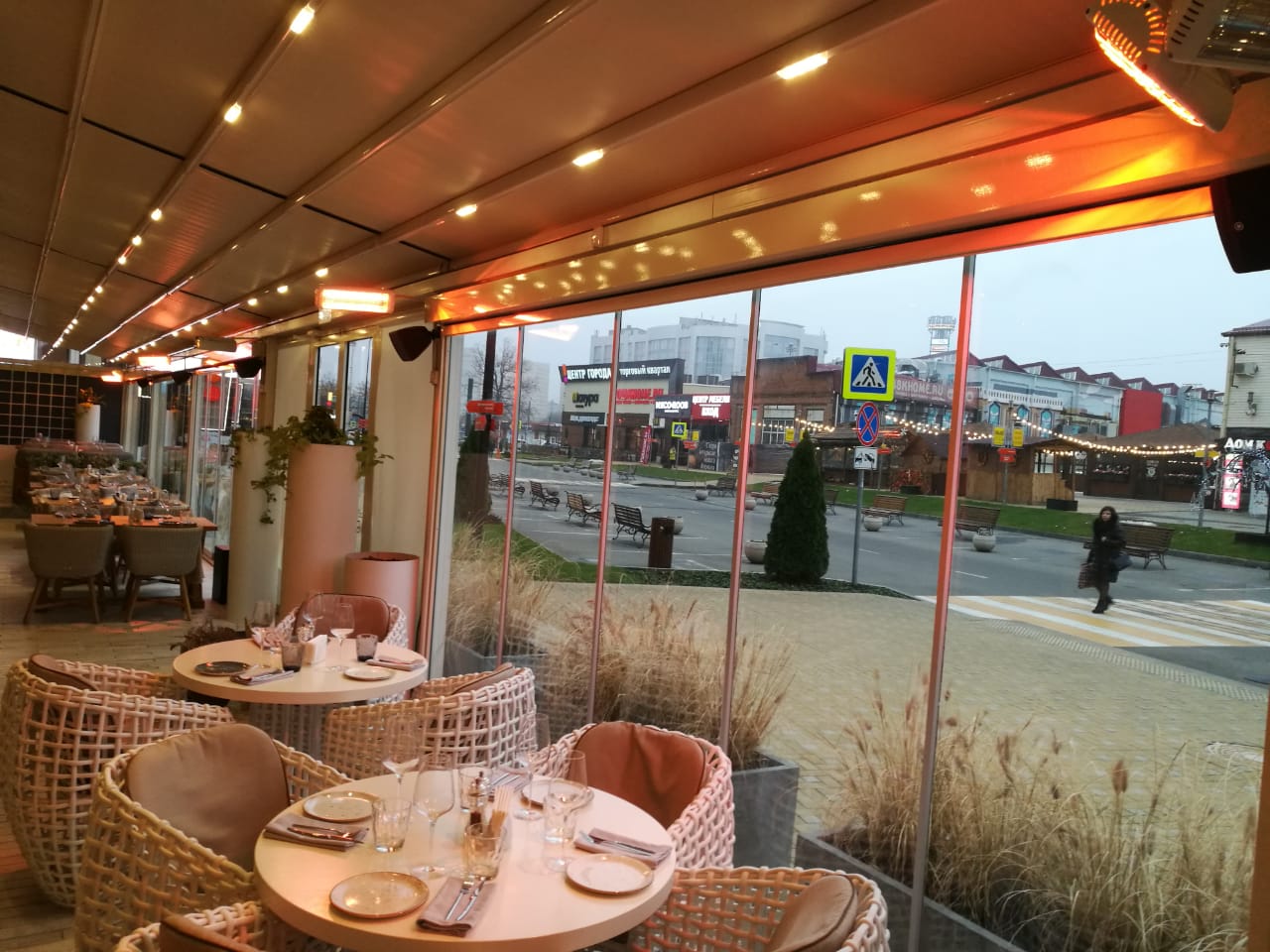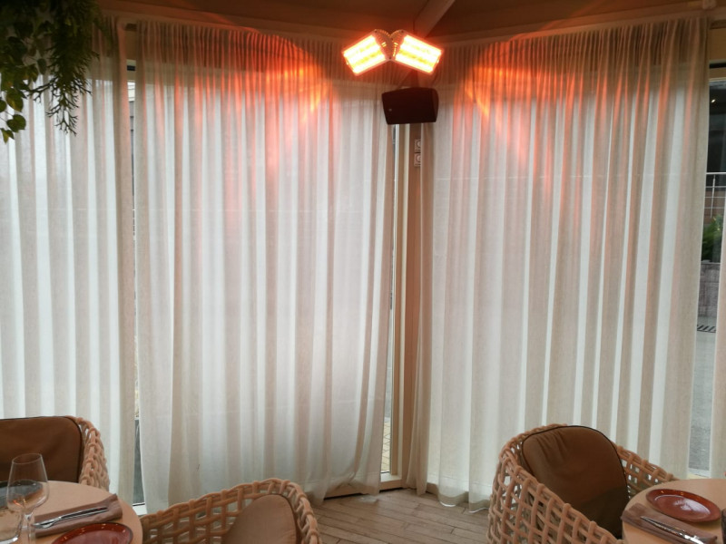 Наступили холода, и, довольно часто, к нам обращаются с вопросом отопления открытых площадей, террас, мероприятий на улице. В этот раз подвернулась отличная возможность не только обьяснить и рассказать о том- как замечательно греют инфракрасные обогреватели интенсивного типа, но и показать. Ресторация «Голый повар» нам любезно в этом помогла. А мы, в свою очередь, решили вопрос с локальным обогревом гостей их полуоткрытой террасы, буквально за один вечер. Полностью, «под ключ». Примечательно в данной системе то- что нет необходимости отапливать всю площадь террасы целиком. Зоны включаются в зависимости от посадки гостей, что позволяет существенно снизить энергопотребление в целом.