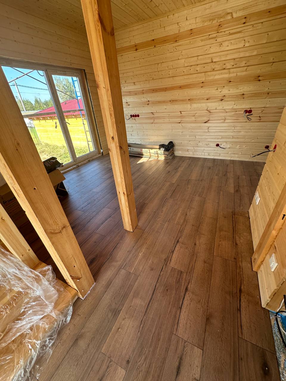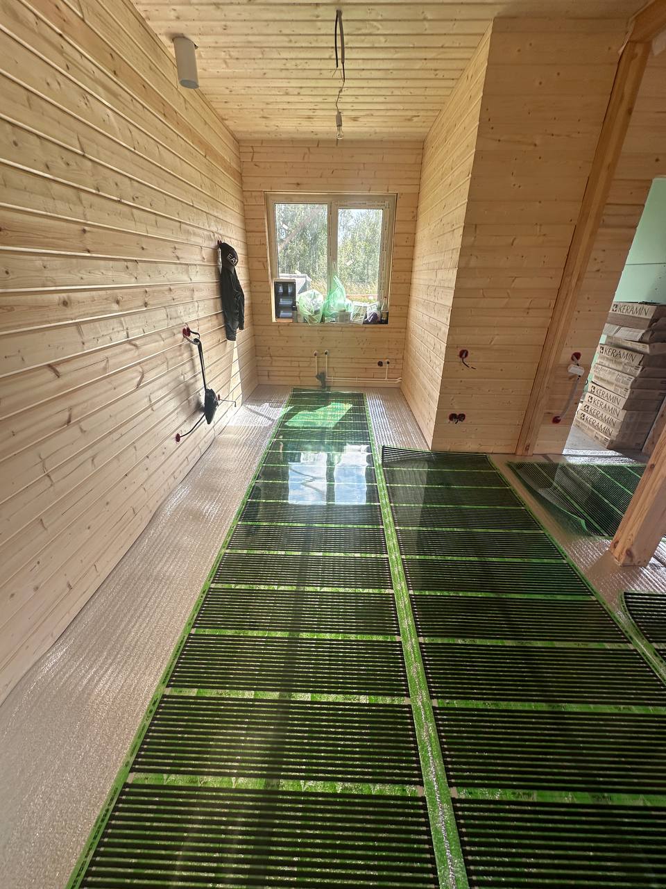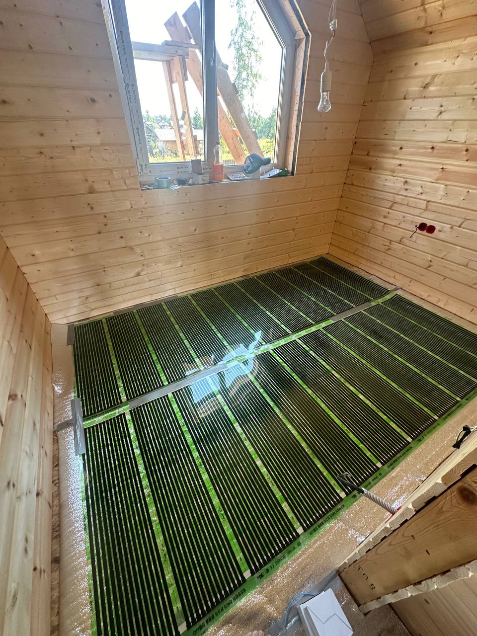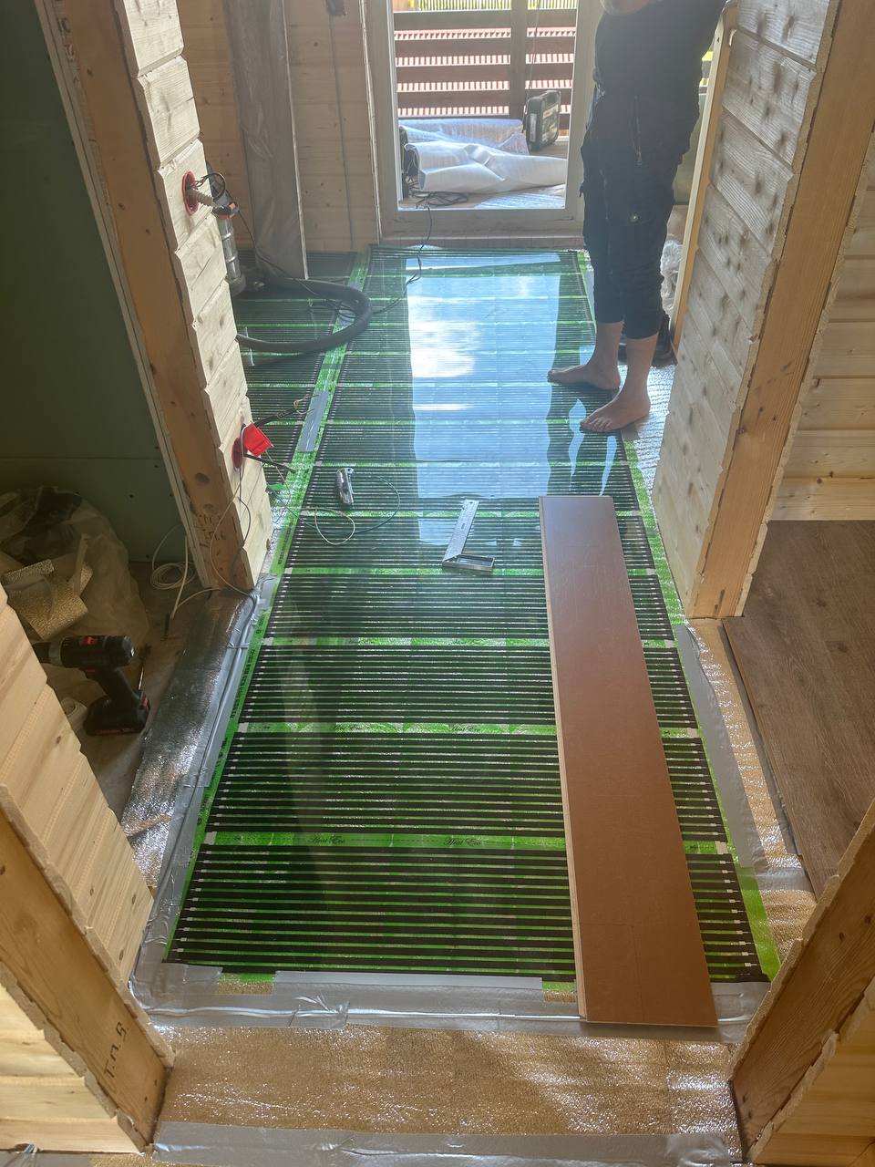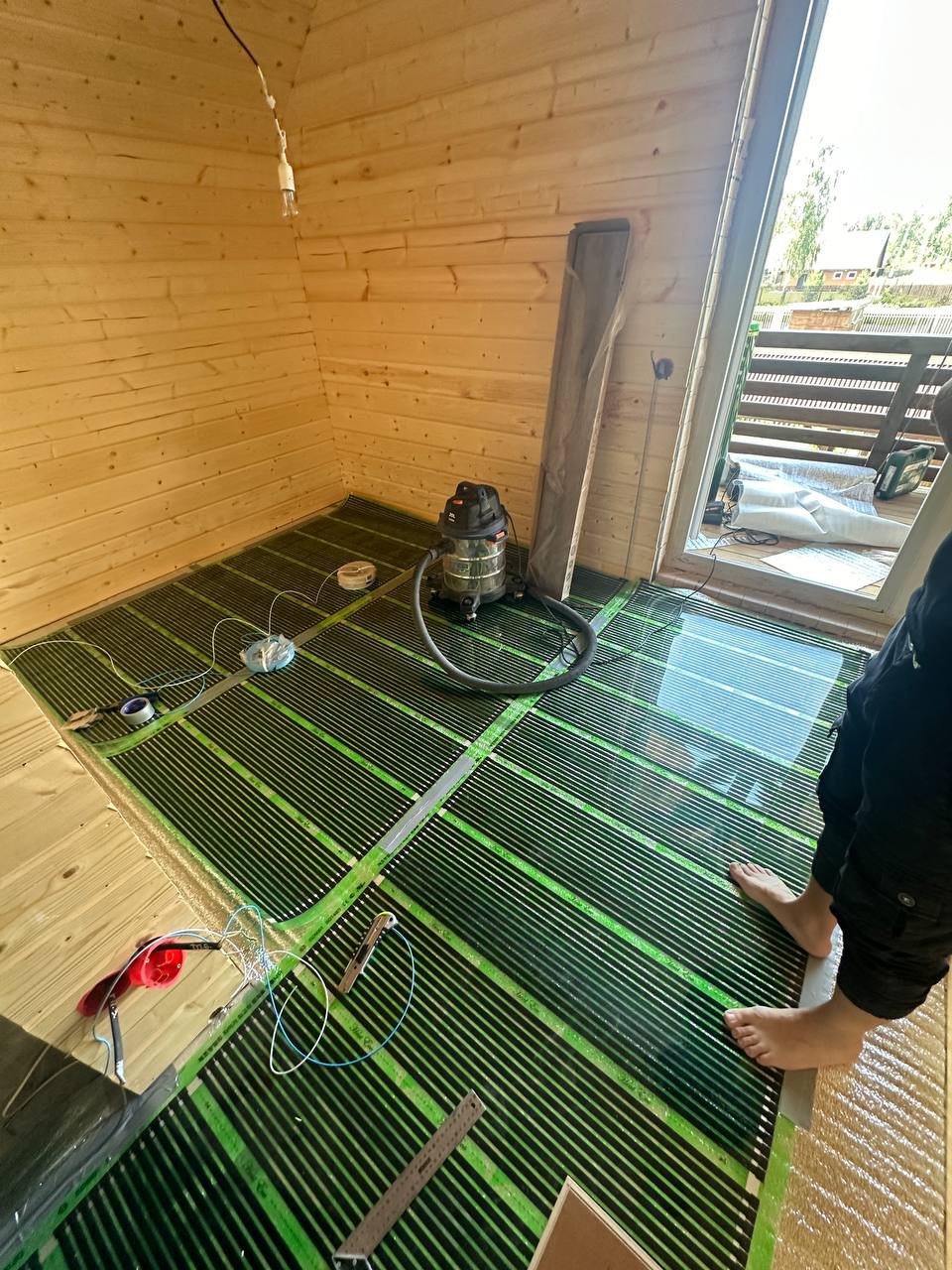 Монтаж теплого инфракрасного пленочного пола для основного отопления, укладка ламината и гидроизоляция мокрых зон в деревне Боровое Новосибирской области
