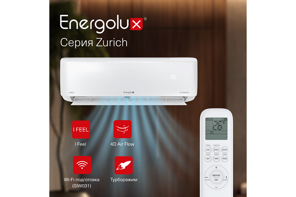 Инверторная сплит-система Energolux ZURICH Inverter SAS12Z5-AI/SAU12Z5-AI – комфорт и эффективность в вашем доме! ❄️