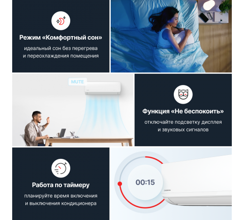 • Низкий уровень шума: работа кондиционера практически не заметна благодаря уровню шума всего 20,5 дБ(А), что особенно важно для спален и рабочих кабинетов. ​