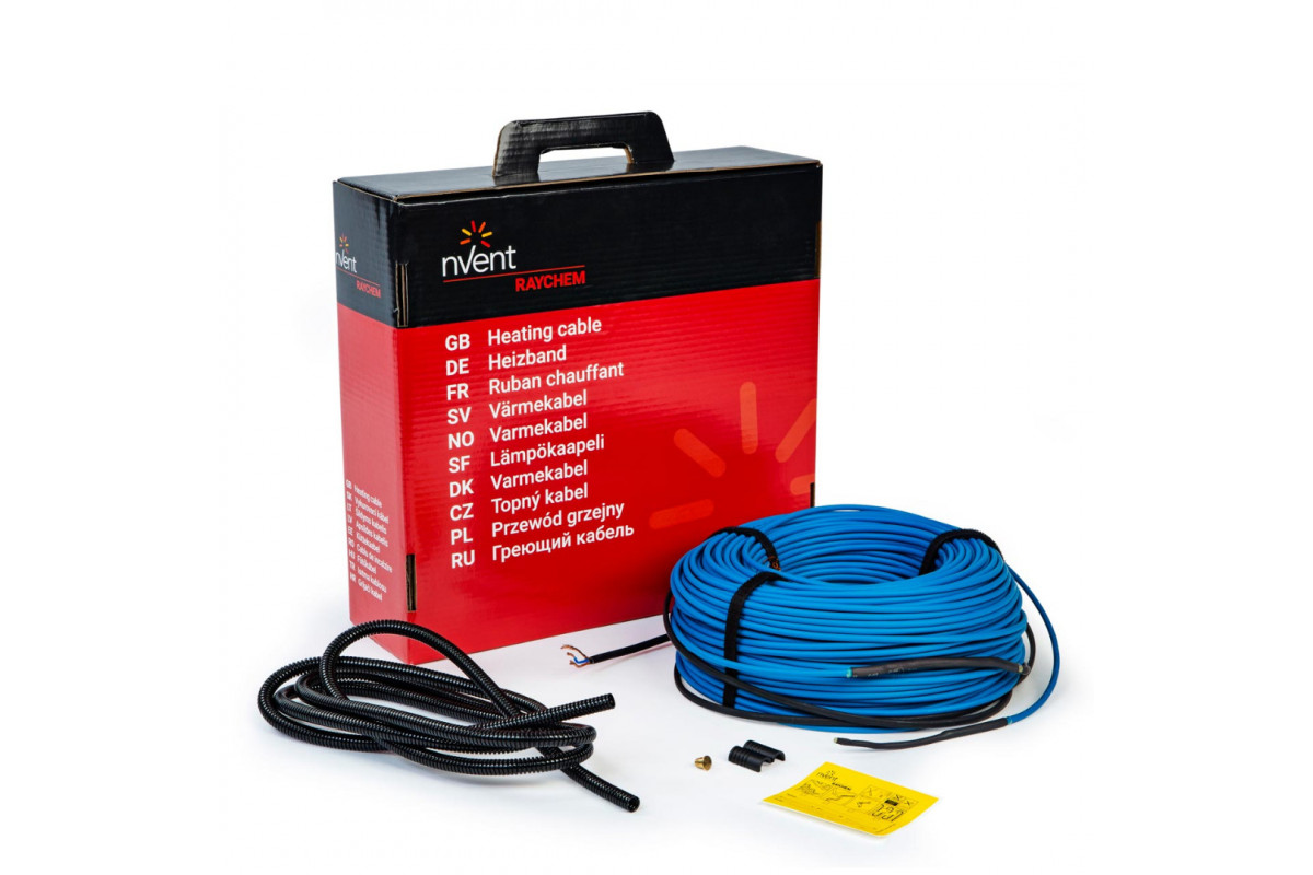 Кабель нагревательный Raychem T2Blue (11м)  — кабель для обогрева пола внутри новых зданий, монтируется непосредственно в цементно-песчаной стяжке на глубине 30–50 мм. Кабель выпускается с силовым кабелем и концевой заделкой, собран в заводских условиях длиной секций от 11 до 200 м.