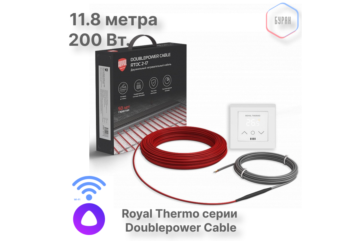 Кабель нагревательный Royal Thermo RTDC 2-17-200 с терморегулятором RTS-16 – это удобство, надёжность и комфорт в одном решении. С ним вы получите быстрый монтаж, экономию энергии и долговечную систему обогрева.