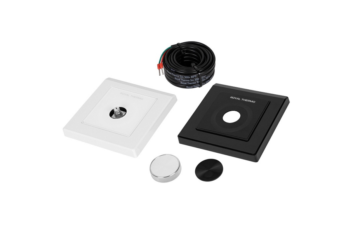 В комплект входит механический терморегулятор RTO-16, обеспечивающий простое и надежное управление системой теплого пола. Он позволяет устанавливать температуру в диапазоне от +5 до +45°C и оснащен индикацией температуры пола. Съемная передняя панель доступна в белом и черном цветах, что позволяет подобрать вариант, подходящий к вашему интерьеру.