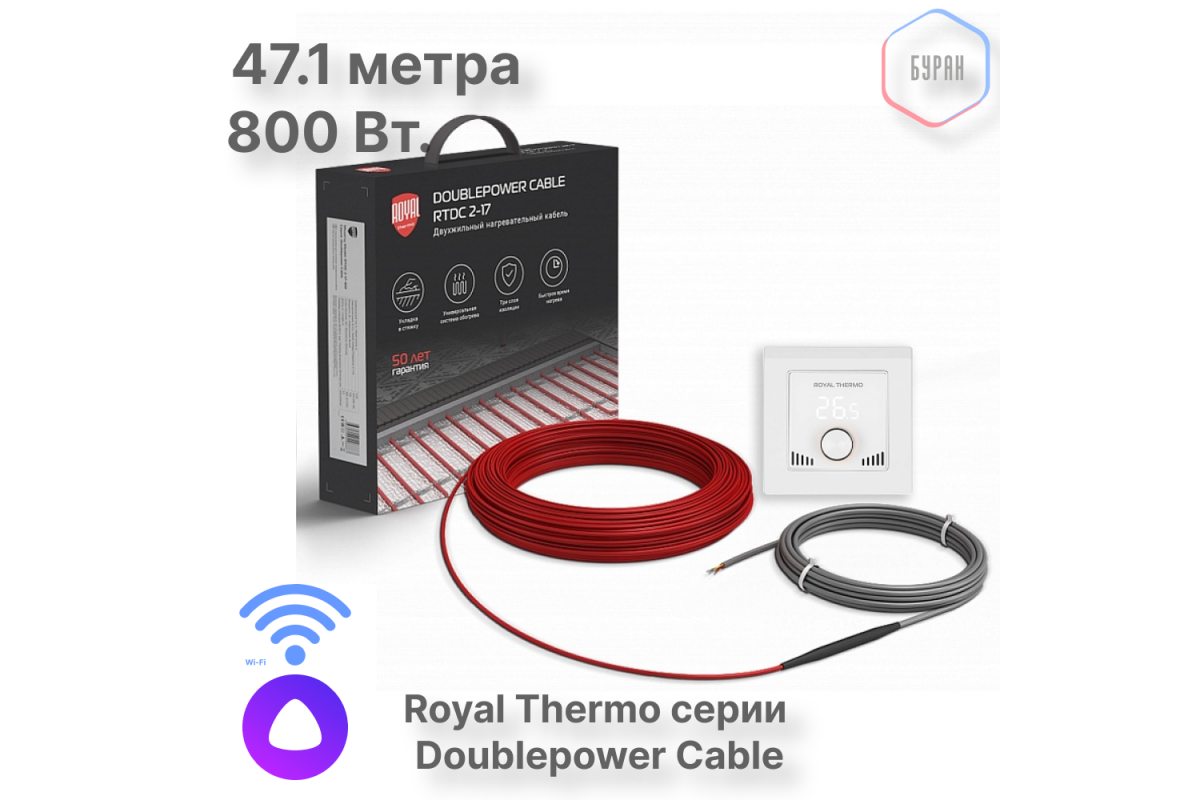 Кабель нагревательный Royal Thermo RTDC 2-17-800 с терморегулятором RTI-16 – это удобство, экономия и комфорт. С ним вы получите:
