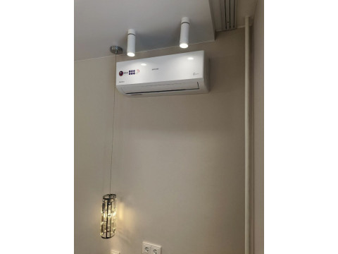 После завершения черновых работ настало время установки внутренних блоков двух сплит-систем BREEON. Эти системы не только обеспечивают комфортный климат, но и идеально вписываются в общий дизайн интерьера. Мы уделили особое внимание эстетике: медные трубки аккуратно спрятаны, чтобы сохранить безупречный вид стен. Ведь важна не только функциональность, но и визуальная гармония.