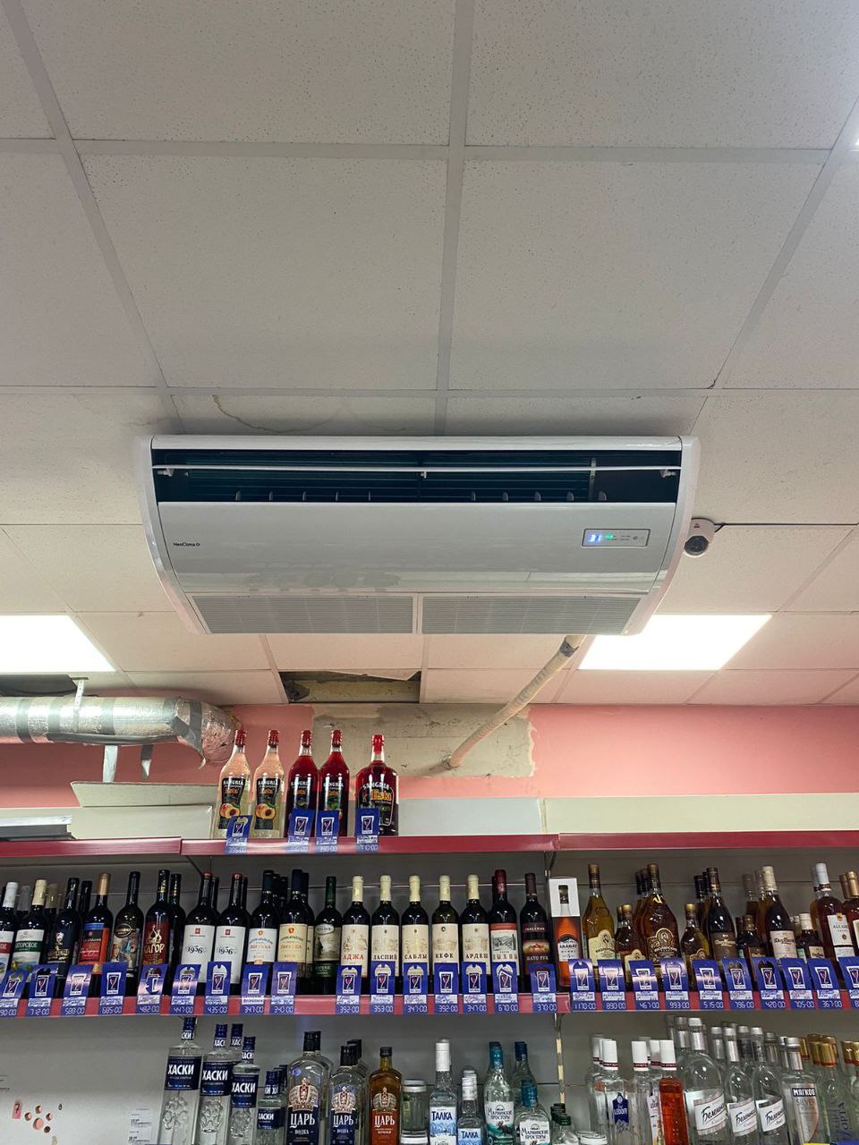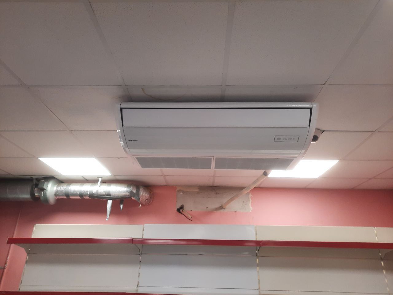 После осмотра объекта приняли решение демонтировать не справляющееся оборудование и установить два напольно-потолочных сплита NEOCLIMA NS/NU-36CT3 на 10 КВт по холодопроизводительности каждый. Монтаж проводила наша штатная бригада профессионалов и еще им немного помог наш родной  экспедитор, за что ему огромное спасибо! Как итог через 8 часов после выезда на замер – комфортный климат в магазине «Фасоль», довольные сотрудники, довольные покупатели и собственник магазина.