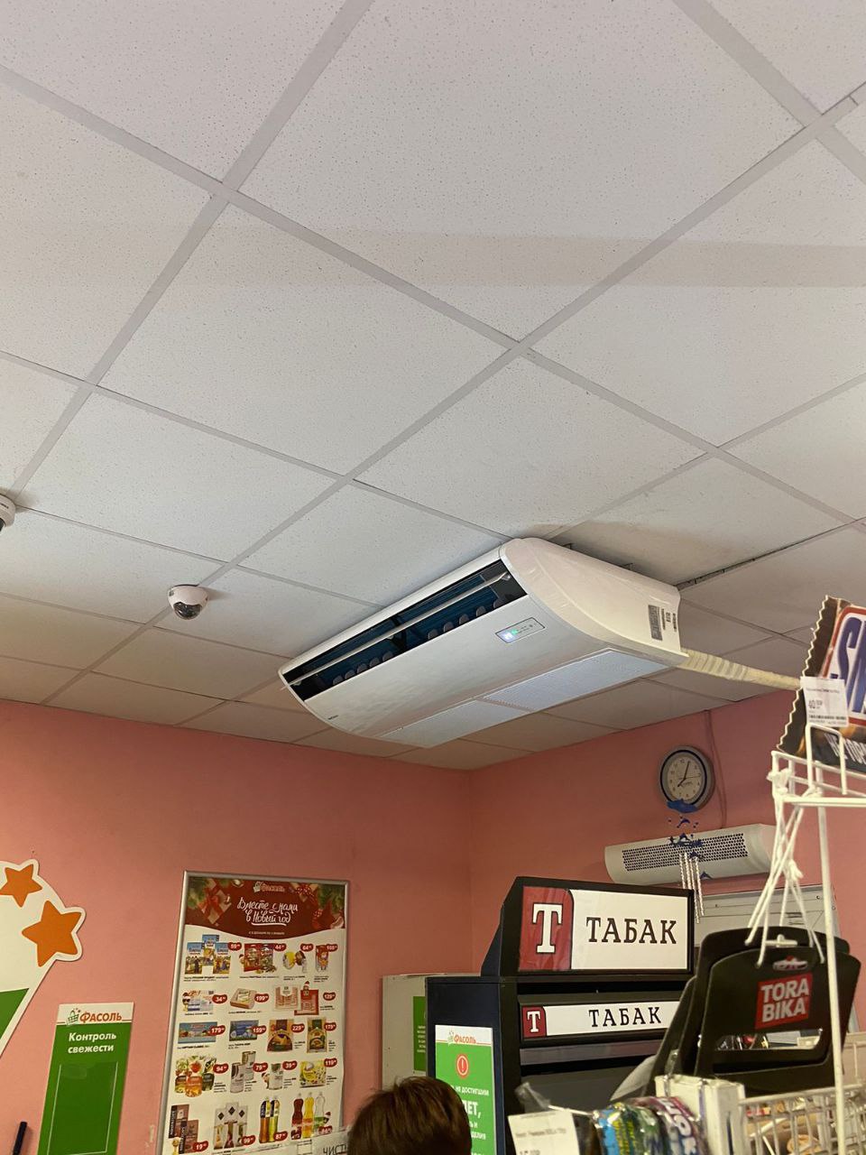 Хотим рассказать об очередном исполненном объекте. Задача поступила от директора магазина продуктов «Фасоль» в Новосибирской области. Погода стояла очень знойная этим летом и оборудование, которое было установлено, не справлялось со своей задачей поддерживать комфортную температуру в помещении.