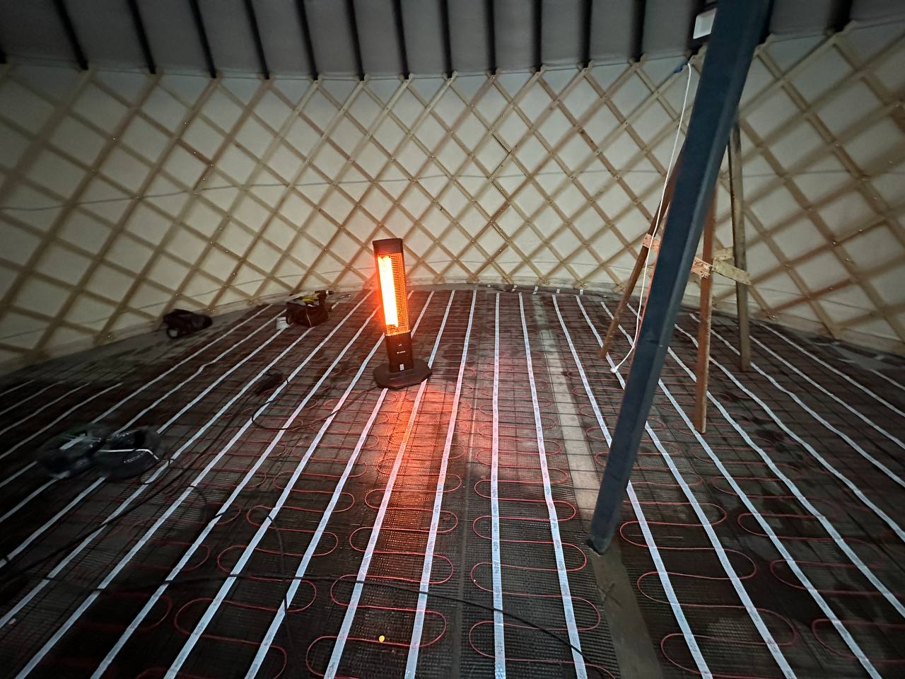 Для юрт был выбран продукт премиум-класса – полы бренда Russian Heat Pro, обладающие повышенной мощностью. Это решение позволяет использовать тёплый пол как основной источник тепла даже в холодное зимнее время. Данная система отличается высокой энергоэффективностью, долговечностью и стабильной работой в условиях переменной нагрузки.