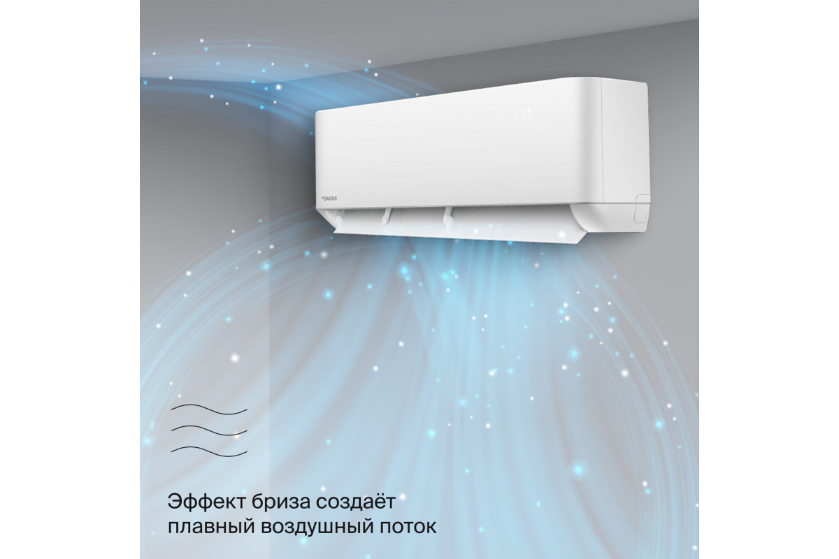 • Эффект бриза: запатентованная технология обеспечивает мягкое и равномерное распределение воздуха, создавая ощущение естественного ветерка.