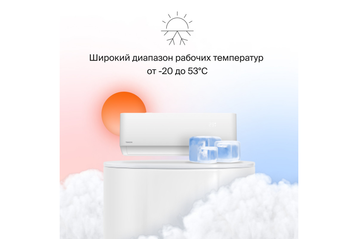 • Широкий диапазон рабочих температур: эффективная работа при наружных температурах от -20°C до +53°C, что делает кондиционер универсальным решением для различных климатических условий.