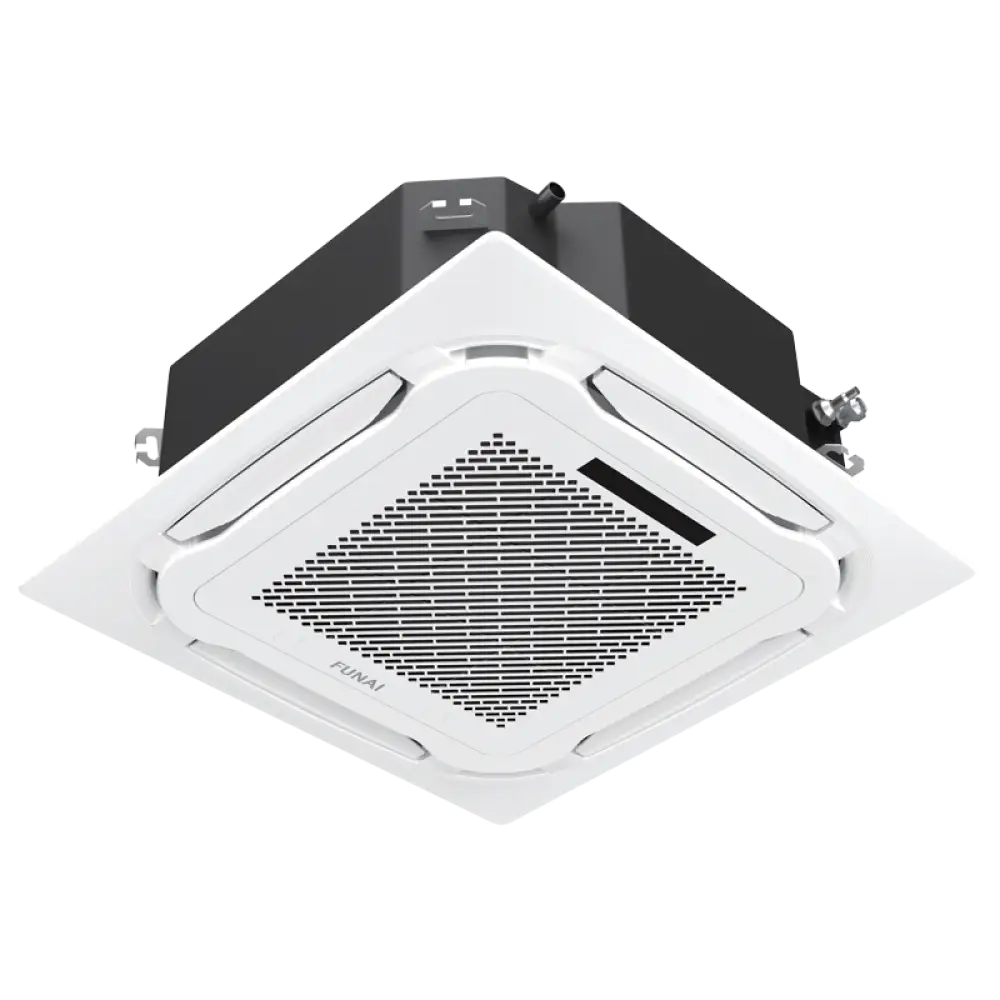 - Кассетные кондиционеры — идеальны для подвесных потолков в офисах и торговых залах.