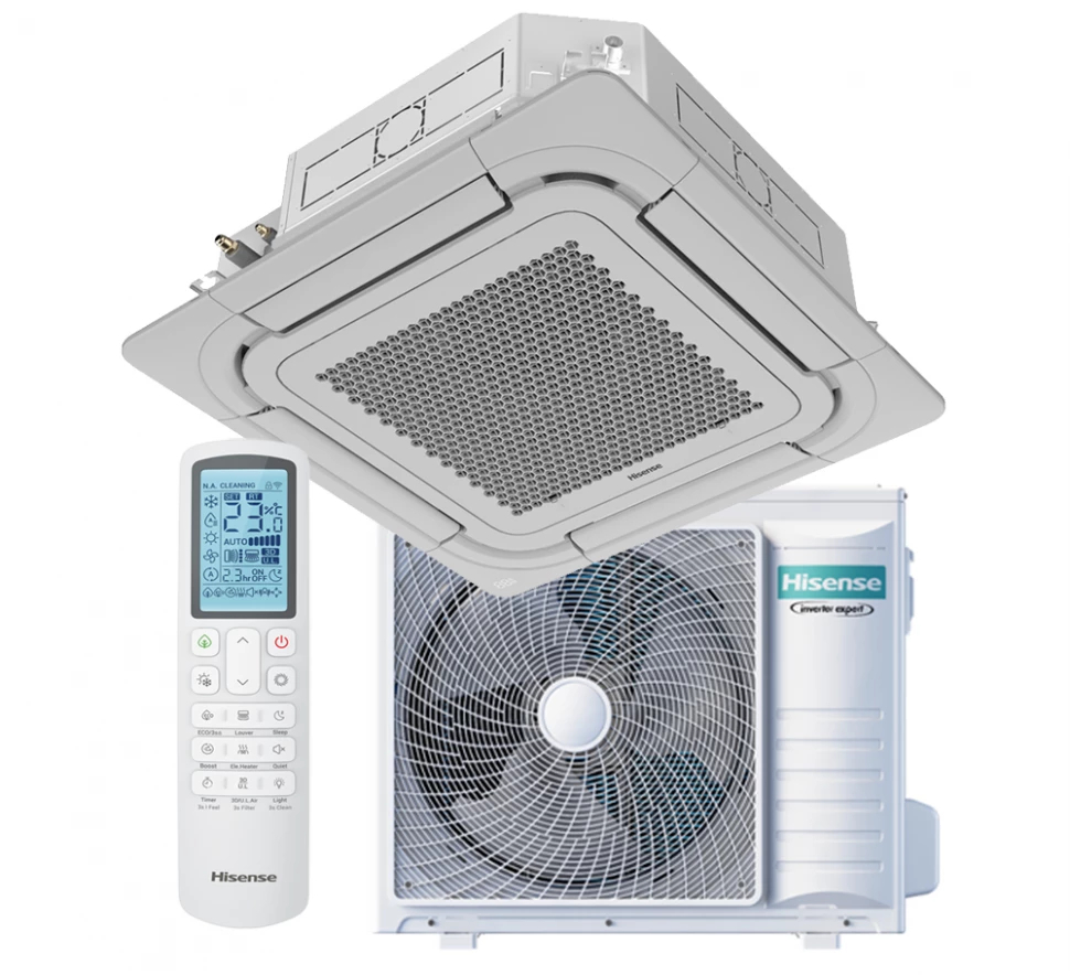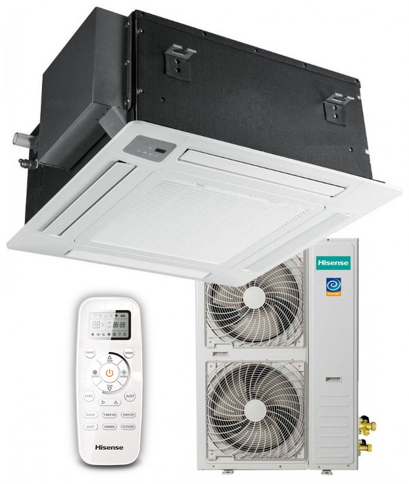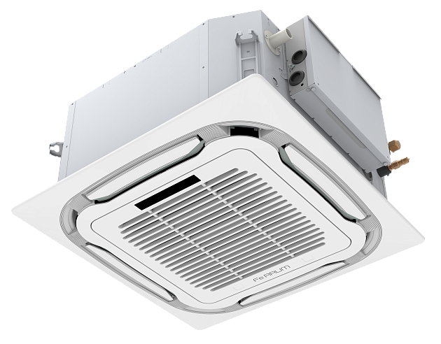 Кассетные кондиционеры отличаются не только высокой производительностью, но и эстетикой. Внутренний блок полностью скрыт в потолке, а на виду остаётся лишь декоративная панель. Среди ключевых преимуществ:
