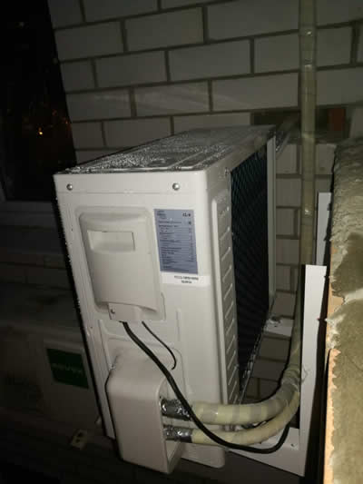 Внешний блок удачно расположился на внешней стене дома. Это облегчило подводку трубопровода к внутреннему блоку, который было решено разместить наиболее близко к внешней стене комнаты.