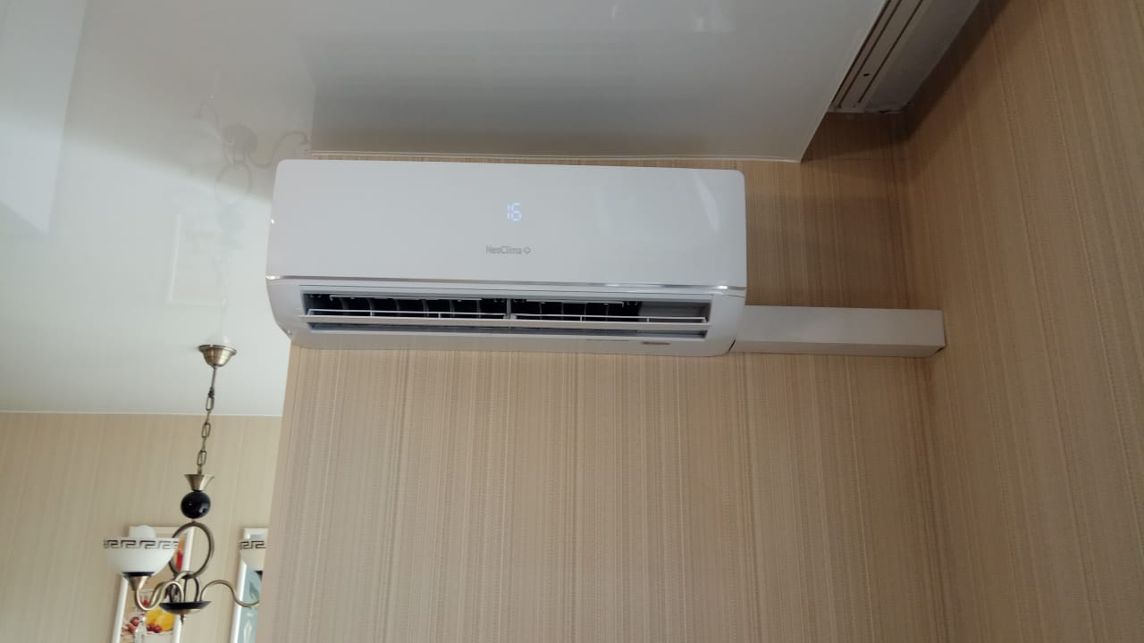 Подобрав технику, которая подошла клиенту  визуально, по характеристикам и, конечно же, подошла в размеры простенка (Сплит-система Neoclima NS/NU - HAX09R), наша монтажная бригада ювелирно смонтировала оборудование.