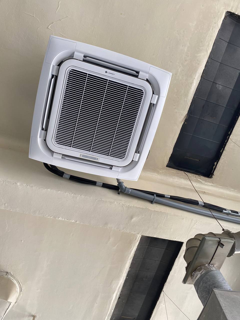 - Установка внутренних блоков: Фиксация кассетных кондиционеров в подготовленных местах.