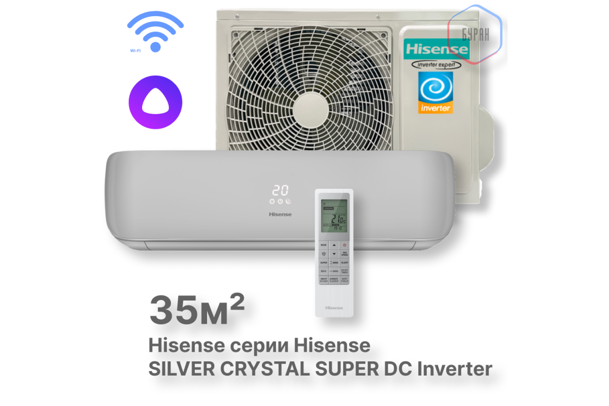 Инверторная сплит-система Hisense AS-13UW4RVETG01(S) Wi-Fi серии Silver Crystal Super DC Inverter