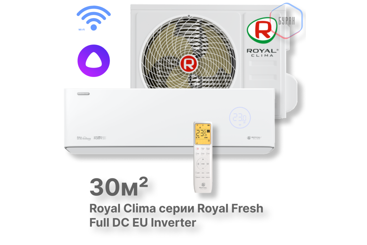Инверторная сплит-система + БРИЗЕР Royal Clima RCI-RF30HN новой серии-флагмана 2022 года — ROYAL FRESH Full DC EU Inverter.