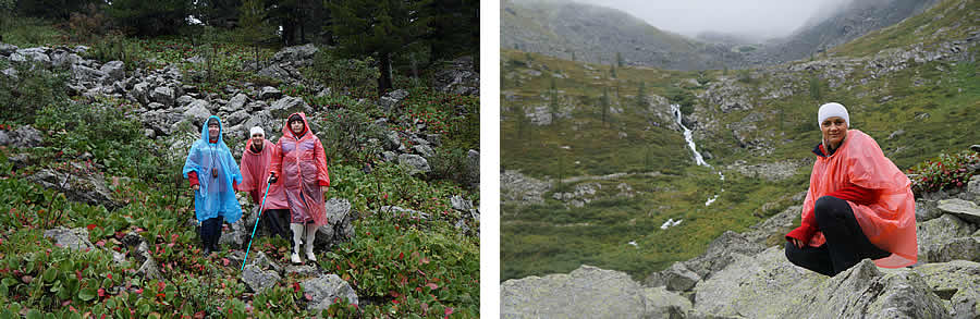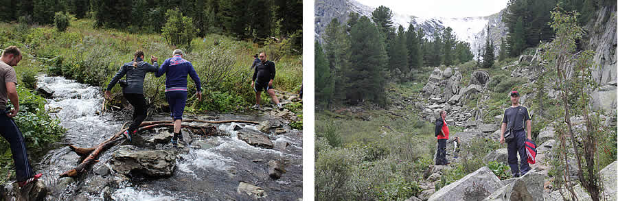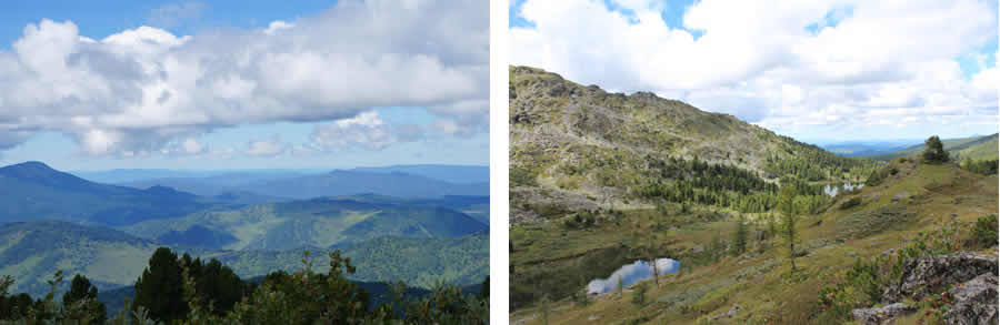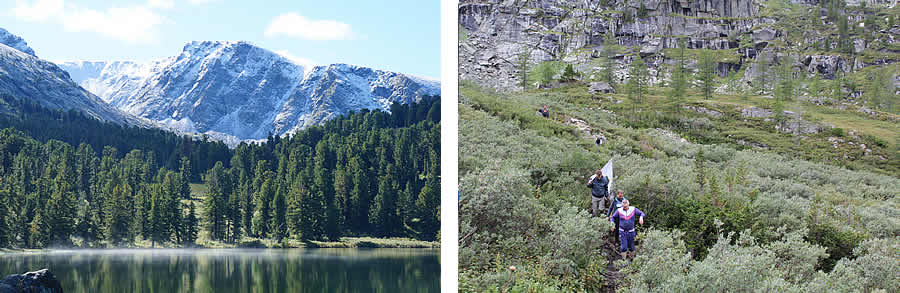 Нас окружали живописные кедры и лиственницы, заросли карликовой березы и ивы, поляны бадана, можжевельника, мха и другой растительности альпийских лугов и высокогорной тундры. Вода в озерах холодная и очень чистая, рыбы в ней нет, наверное создана специально для любования. Зато много веселых и юрких бурундучков. Вокруг много причудливых скальных ансамблей, есть любопытные пещеры и небольшие водопады.