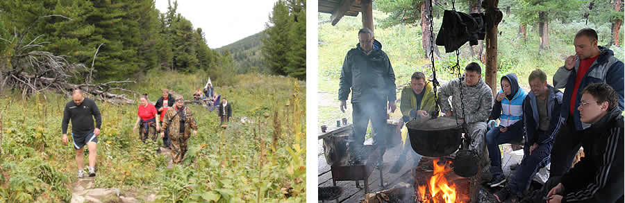 Наша дружная компания дорогой не унывала, что здорово помогает в дороге. Была она непростой. Подъем по горной дороге до базы отдыха под силу только машинам с высокой проходимостью, но мы смело преодолели это таежное бездорожье.