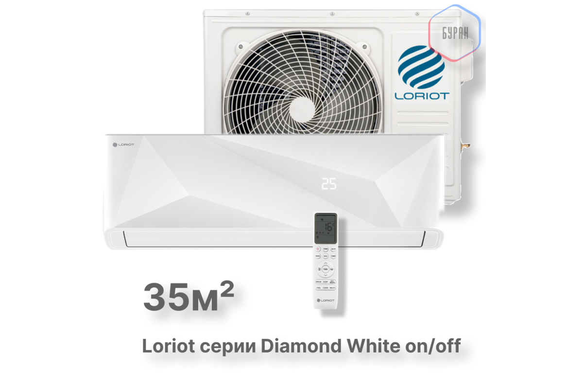 Кондиционер Loriot Diamond White on/off LAC-12MD предназначен для помещений площадью до 35 м², обеспечивая эффективное охлаждение и обогрев небольших комнат и офисов.​