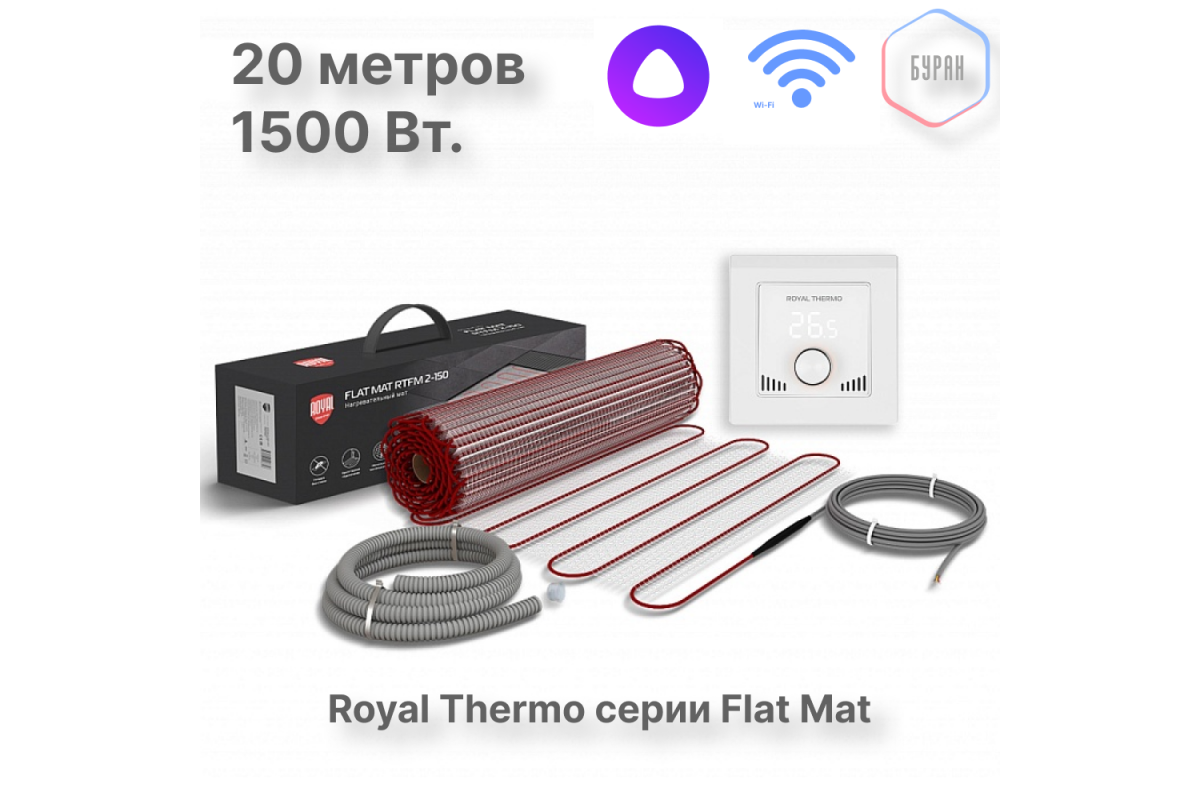 Мат нагревательный Royal Thermo Flat Mat RTFM 2-150-10 с терморегулятором RTO-16