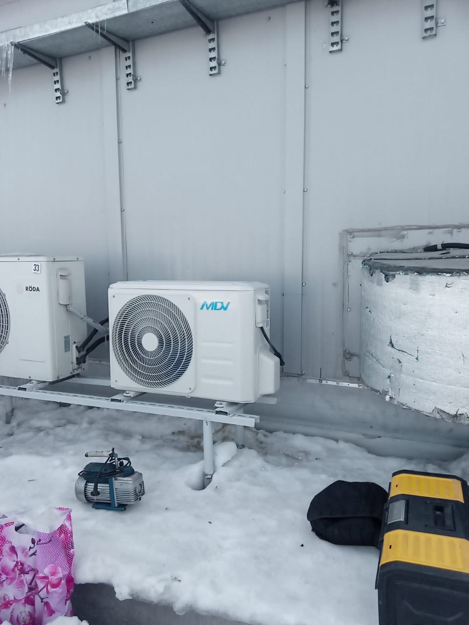 Монтаж оказался не так прост по причине установки наружного блока на крышу здания. Наш монтажник Павел с большим опытом работы произвёл качественный монтаж в короткие сроки.