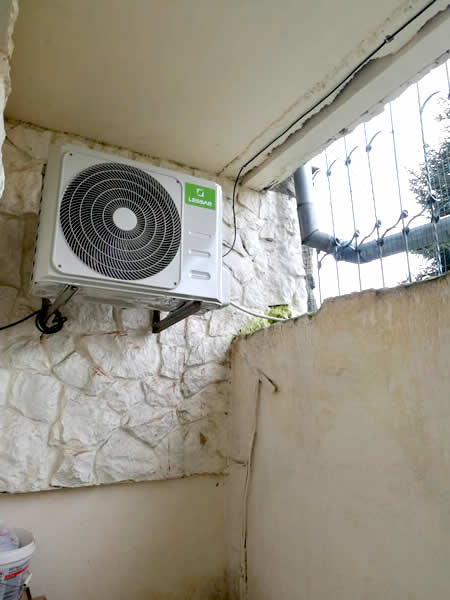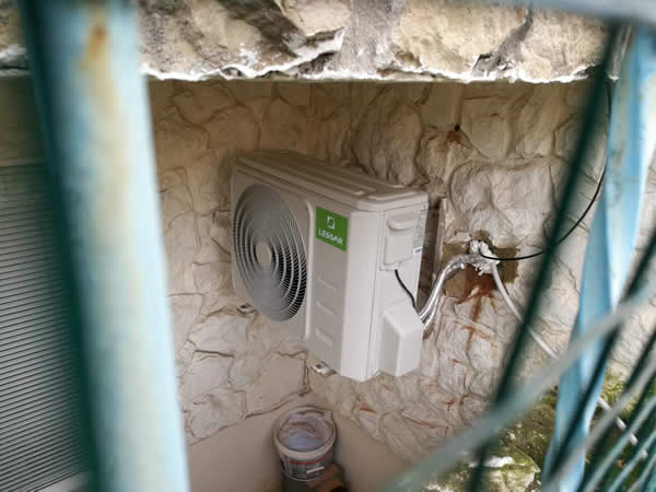 Необычный вариант размещения внешнего блока сплит-системы Lessar LS-H07KPA2 / LU-H07KPA2 – в полуцокольном помещении, рядом с окошком.