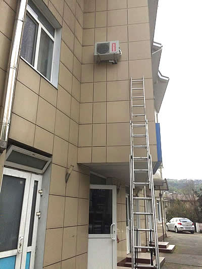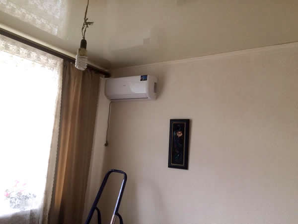 Некоторая сложность была при навешивании внешнего блока, стена дома имела облицовку, с которой нужно было работать очень осторожно. Все получилось аккуратно.