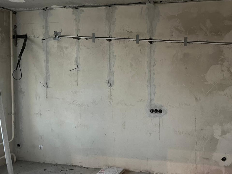 Работы начались с проектирования трассы под кондиционер — это один из самых ответственных этапов, особенно на стадии чернового ремонта. Наш специалист Антон, имеющий многолетний опыт монтажа климатических систем, разработал детальный чертёж трассировки, учитывающий будущую мебель, расположение электрических точек и инженерных коммуникаций.