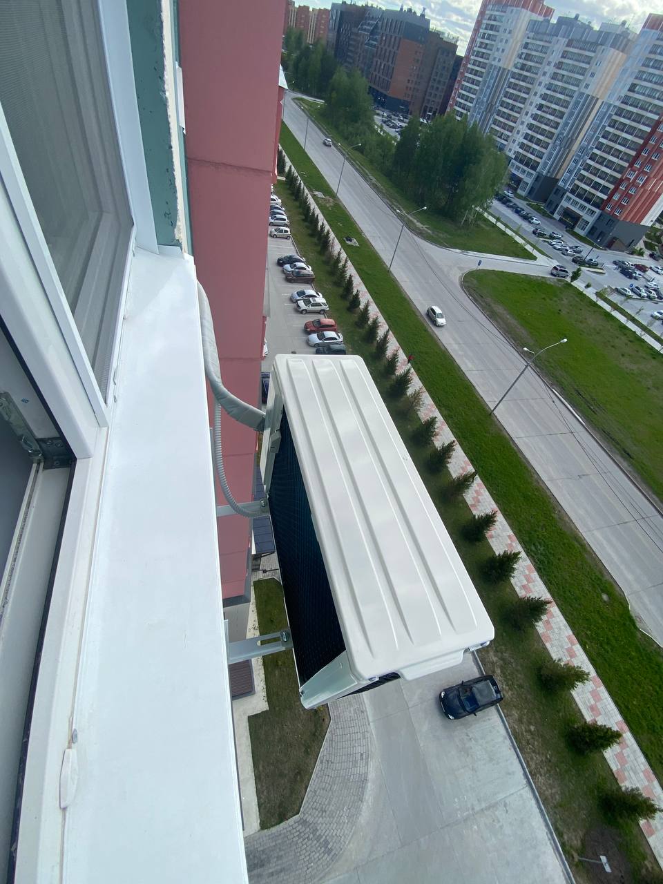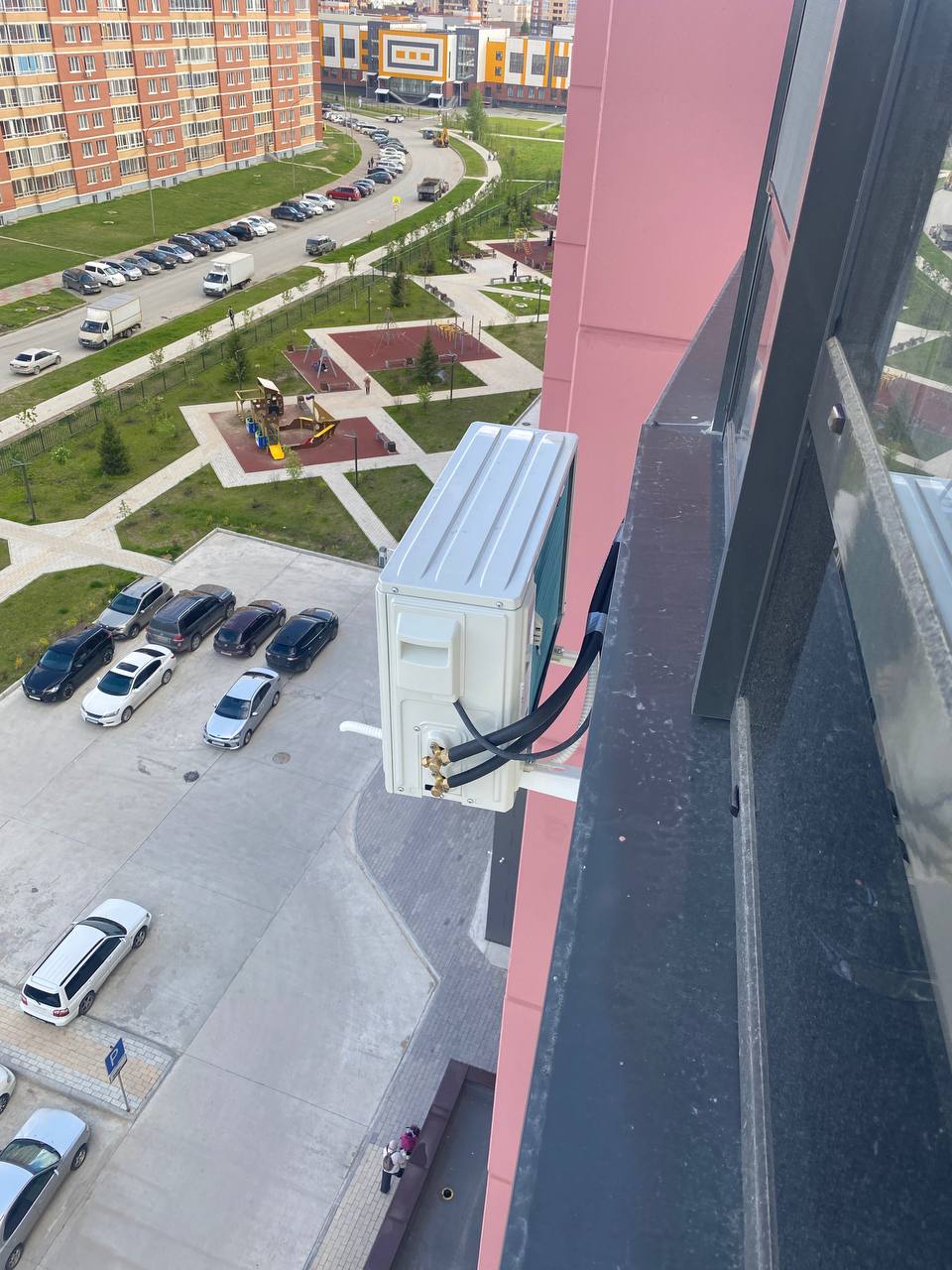 Третья сплит-система была установлена через лоджию с выводом окна на лоджии. Это решение позволило эффективно использовать пространство лоджии для размещения коммуникаций.